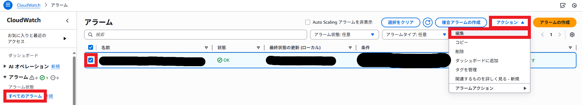例:CloudWatchアラームがアラーム状態になった場合)
