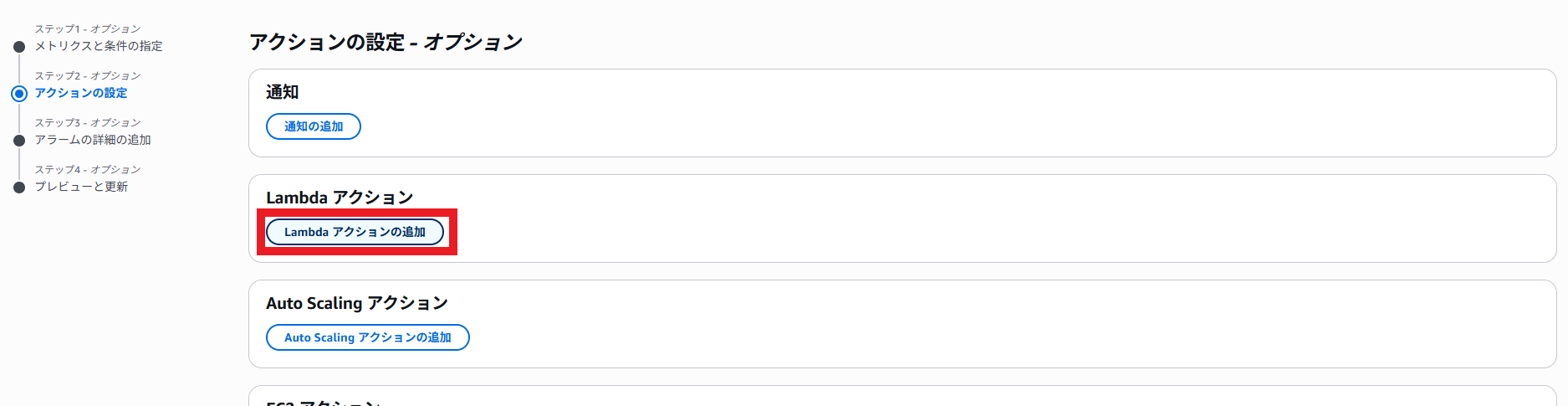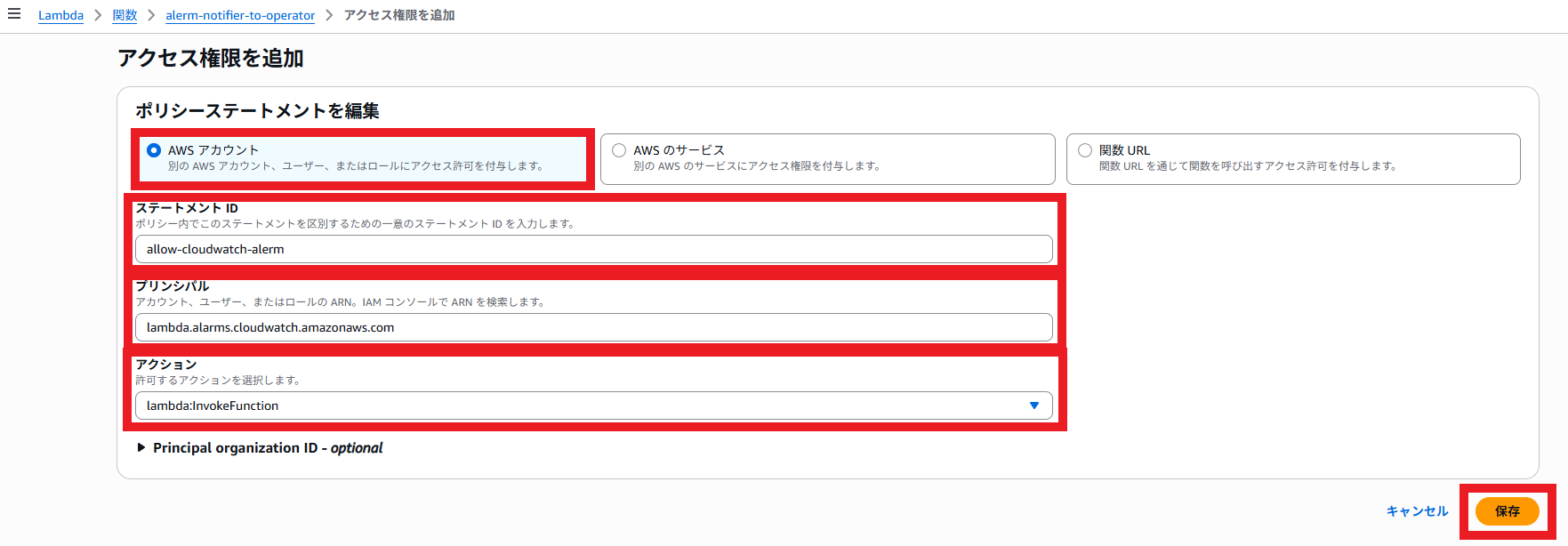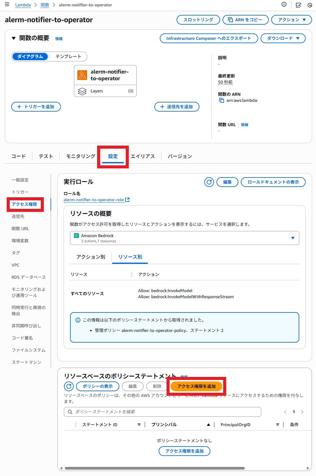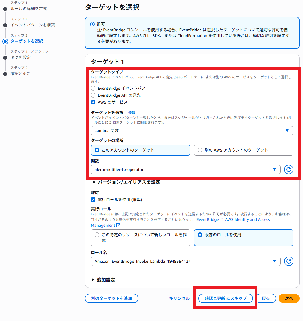 CloudWatchアラームやEventBridgeのルールは事前に配備されているものとします。