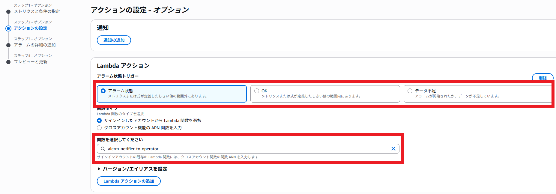 - ALARM: [arn:aws:lambda:ap-northeast-1:123456789012:function:**********] [arn:aws:sns:ap-northeast-1:123456789012:LoginFailureNotification]